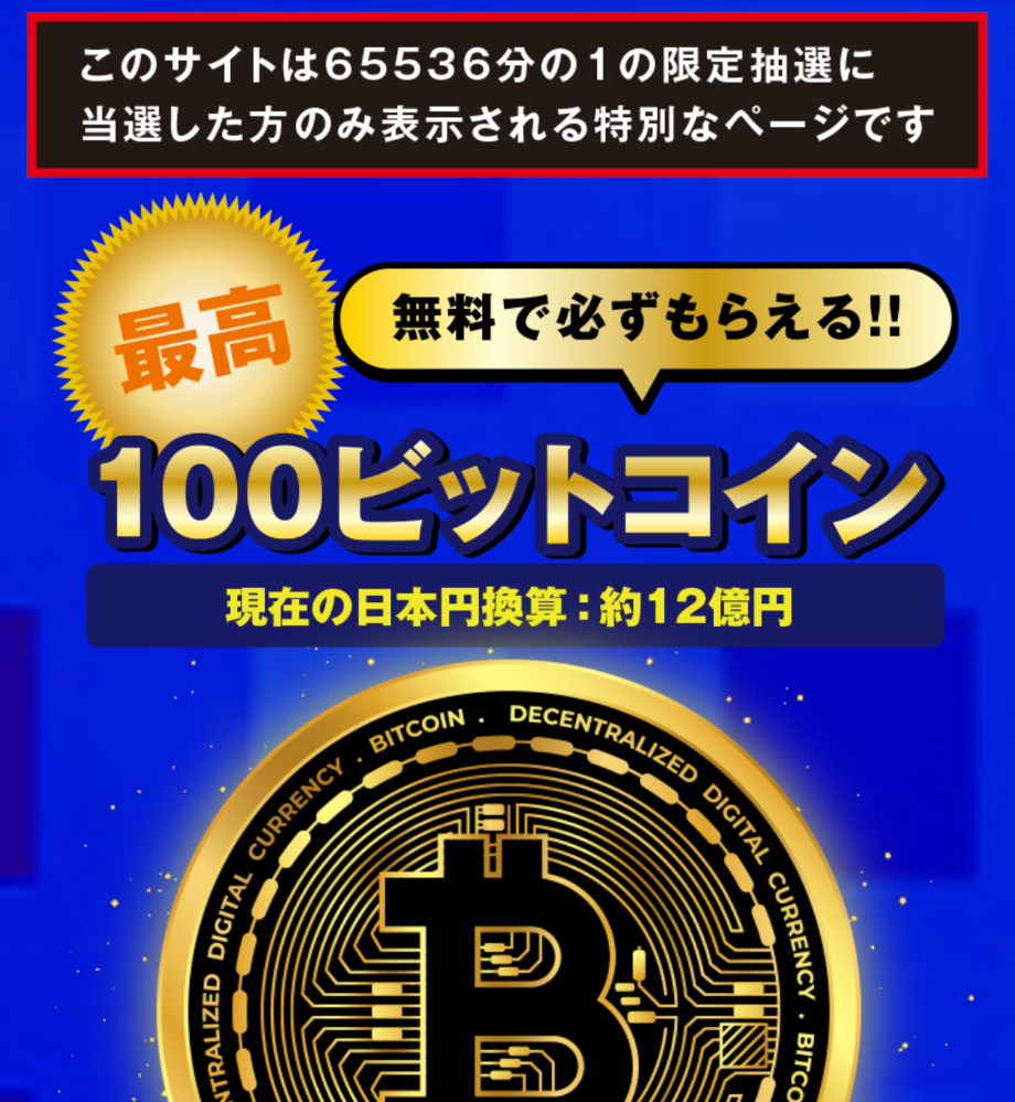 「65536分の1の限定抽選に当選」「誰でも無料で12億円相当のBTCがもらえる」といった内容が語られていますが、本当に信じて良いのか、不安に思う方も多いのではないでしょうか。