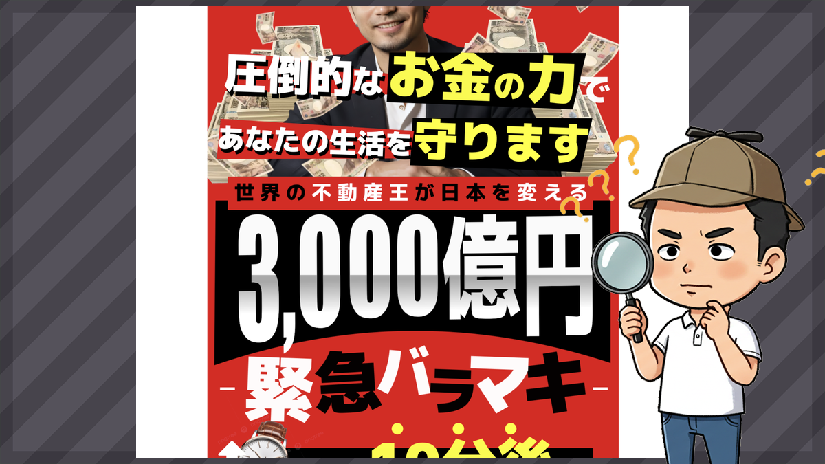 本記事では、3000億円緊急バラマキ企画の内容や評判、仕組みを徹底調査し、本当に信頼できる案件なのか、それとも危険な詐欺案件なのかを詳しく解説します。