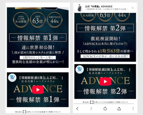 結論からお伝えすると、米澤蓮という人物のアドバンス(ADVANCE)は誇大広告の可能性が高く、リスクのある案件です!