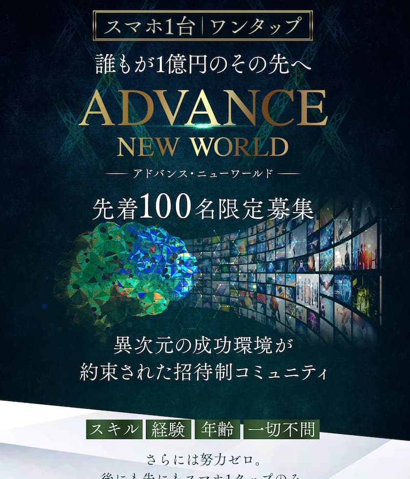 「ADVANCE NEW WORLD」という有料コミュニティへの案内がきますが、