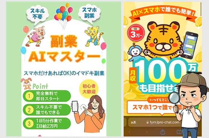 運営者特に最近は「AIの自動売買ツールで月利200%」「AI副業で毎月100万円GET!」といった甘い言葉で誘われるケースが目立ちます。