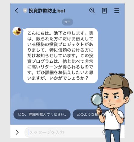 「うますぎる話」や「絶対に儲かる」には警戒を。