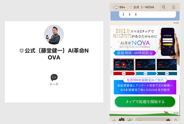 そこから「公式 藤堂健一 AI革命NOVA」というLINEアカウントの追加を行います。