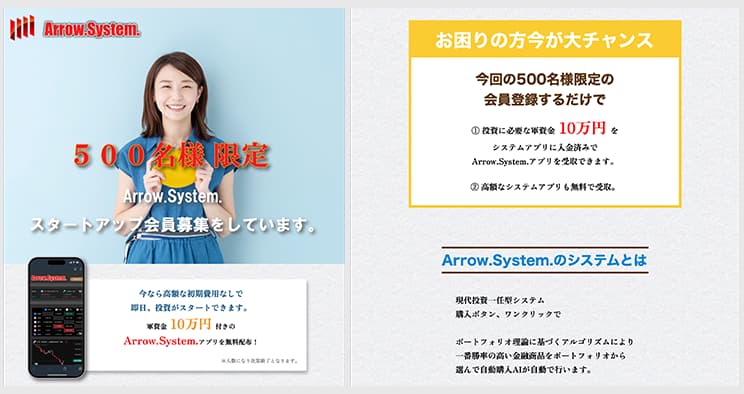 非常に魅力的な内容ですが、ArrowSystem(アローシステム)に関する具体的な説明はありません。