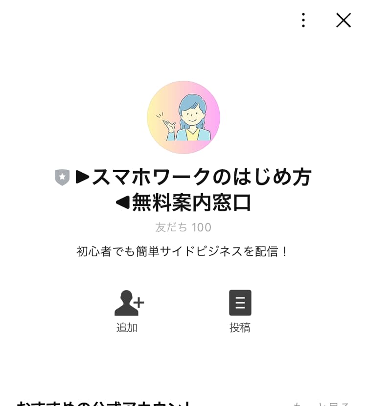 「スマホワークのはじめ方 無料案内窓口」という公式LINEへの登録を求められました。