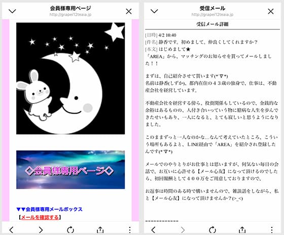 「AREA」という専用のチャットサイトに登録するよう誘導されます。