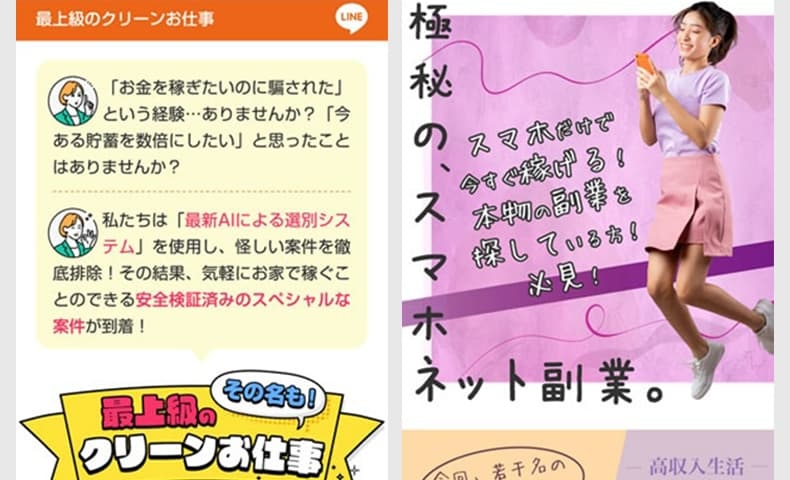 今回のちょこプラ(Choco+)の他にも、「極秘のスマホネット副業」というサイトなどが確認できました。