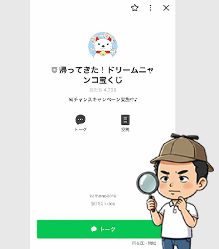 「帰ってきた!ドリームニャンコ宝くじ」という公式LINEの追加画面に飛びました。