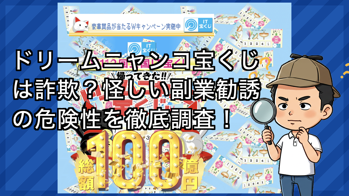 今回は、ドリームニャンコ宝くじという宝くじ・当選系の副業案件について徹底的に調査します。