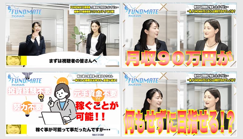 結論からお伝えすると、ファンドメイト(FUNDMATE)は誇大広告を多用した詐欺まがいな副業案件の可能性が高いため、おすすめできません!