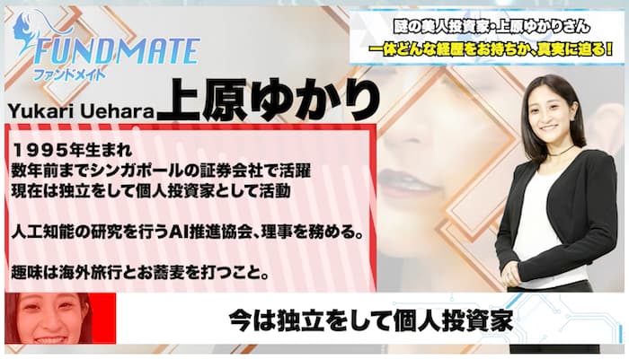 ファンドメイト(FUNDMATE)の運営統括責任者として紹介されていた「上原ゆかり」という方について調査していきます。