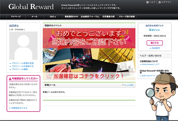 「Global Rewardは新しいソーシャルコミュニティサイトです。」