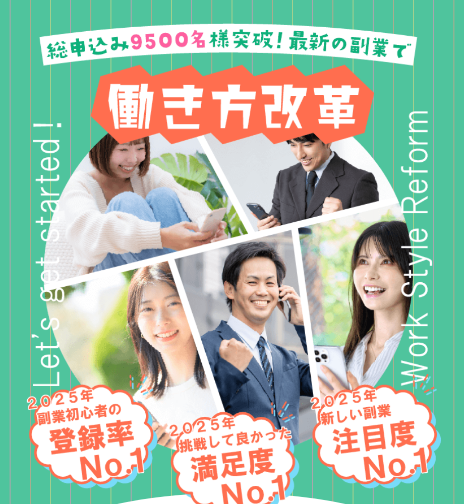 スマホだけでOK/場所・時間に縛られない/完全後払い0円/スキル不要で誰でも始められる最新の副業