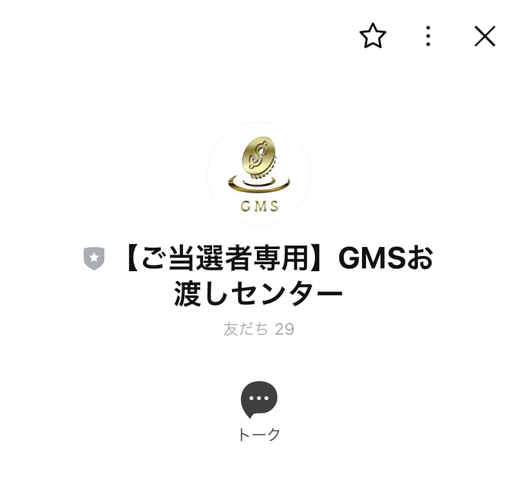 さらに案内に従って進むと、次は「ご当選者様専用 GMSお渡しセンター」という別のLINEアカウントを追加するよう指示されます。