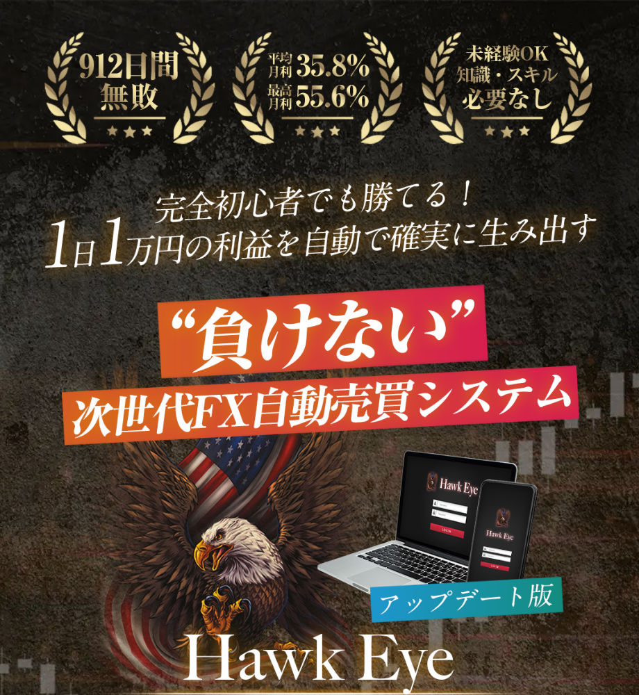 ホークアイ(HawkEye)とは、FXの自動売買システムを使って、裁量トレードの知識がなくても利益を狙えると謳うFX投資案件です。