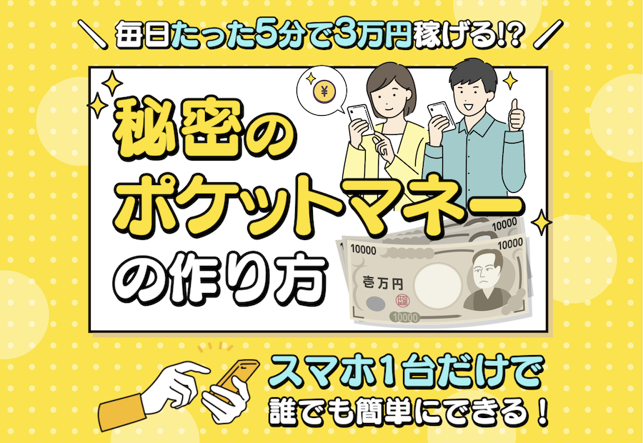 秘密のポケットマネーとは、スマホ1台あれば誰でも簡単に「毎日たった5分で3万円が稼げる」と宣伝されている副業案件です。