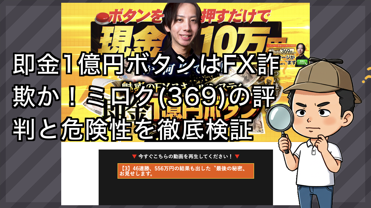 即金1億円ボタンはFX詐欺か!ミロク(369)の評判と危険性を徹底検証