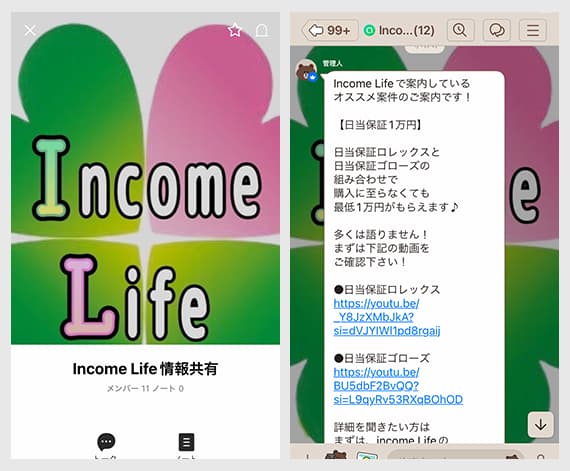LINEオープンチャットは「Income Life 情報共有」という名前です。