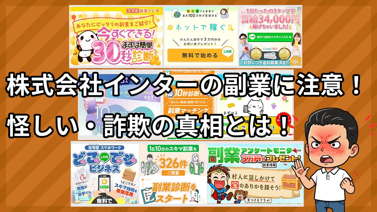 今回は、株式会社インターの副業というスマホ副業案件について徹底的に調査します。