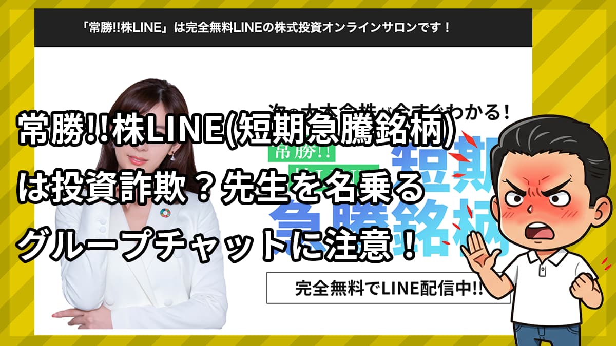 常勝!!株LINE(短期急騰銘柄)の広告は投資詐欺?先生を名乗るグループチャットに注意!