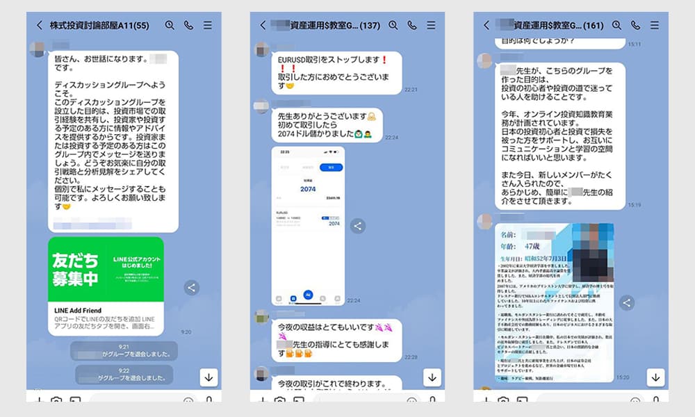 • 稼いでいる先生を装った、劇場型詐欺まがいなグループチャットだった