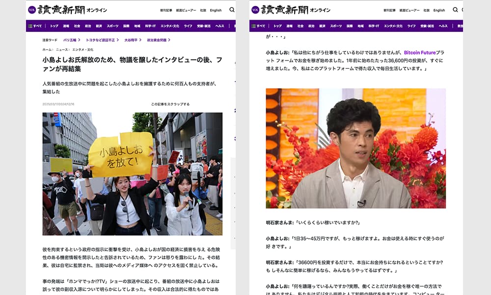 今回、読売新聞の偽サイトから小島よしお・ホンマでっか!?TVを装ったSNS広告について調査します!