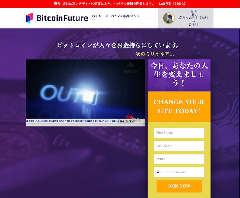 ※ ちなみに、この投資システム名はコロコロと名前を変えているようなので、「BitcoinFuture」ではない名前に変わっている場合があります。