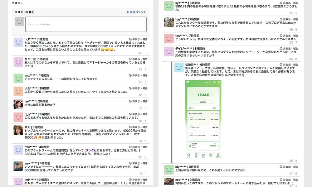 など大金を稼ぐことができたという話は事実無根・フェイクです。