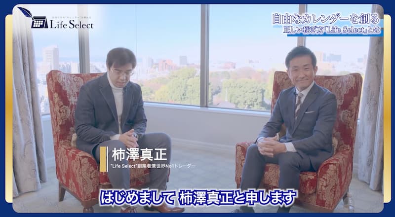 動画内では、柿澤真正とインタビュアーによる対談形式でLifeSelect(ライフセレクト)の説明が語られていきますね。
