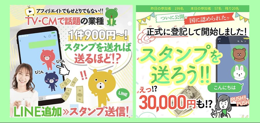 つまり、この手の「LINEでスタンプを送るだけの副業」は、誰でも簡単に稼げるように見せかけた誇大広告で、LINEに登録させて囲い込み、お金を引き出すのが本当の狙いです。