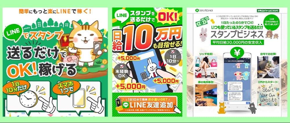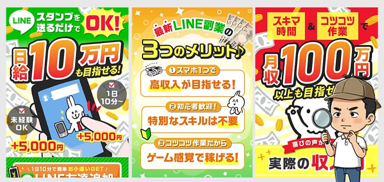 「LINEスタンプを送るだけで日給3万円〜10万円!」