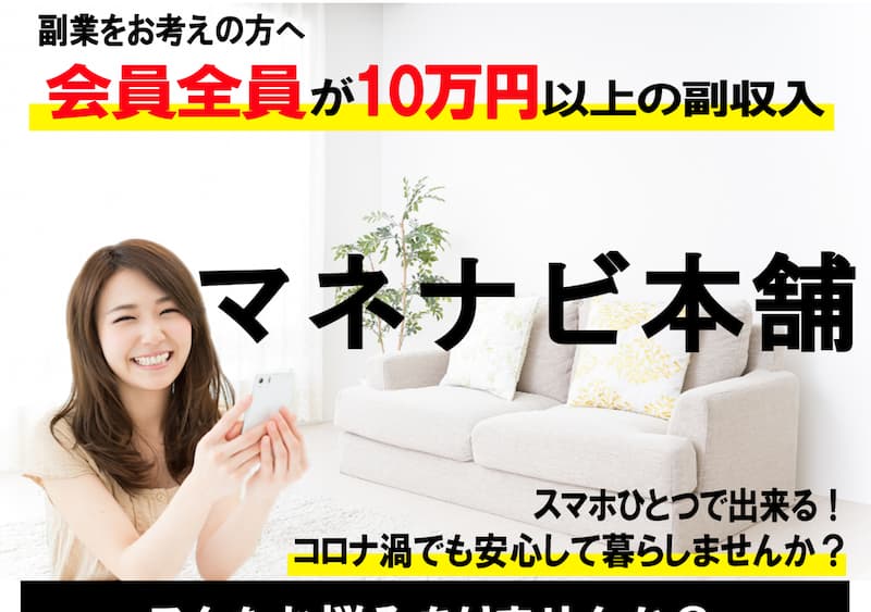 マネナビ本舗では「会員全員が10万円以上の副収入稼いでいる」と魅力的なことが書かれていますが、
