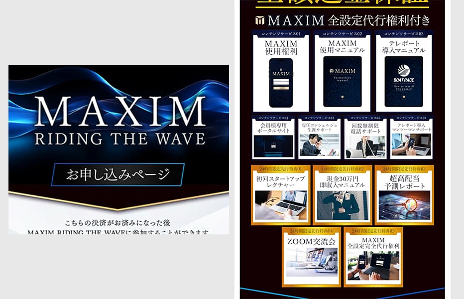 「MAXIM RIDING THE WAVE」に入れば、今回のMAXIMシステムの利用権利がもらえたり、特別なサポートを受けれるとのことですが、ここまでのやり方に悪質性を感じますよね。