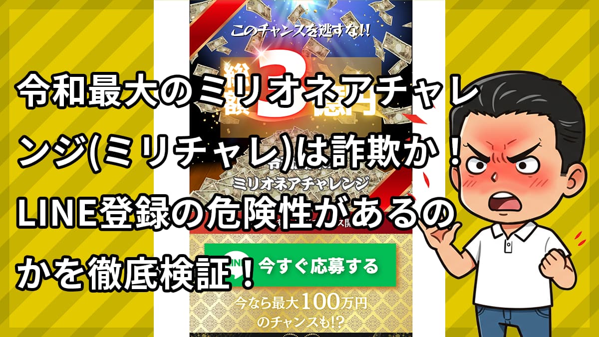 今回は、令和最大のミリオネアチャレンジ(ミリチャレ)という懸賞案件について徹底的に調査します。