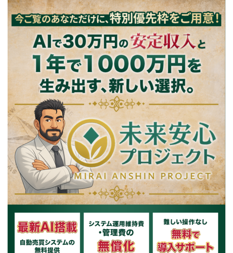 この記事では、未来安心プロジェクトの内容や口コミ・評判をもとに、副業として本当に危険なのかどうかを、私の経験も交えながら詳しく検証・解説していきます。