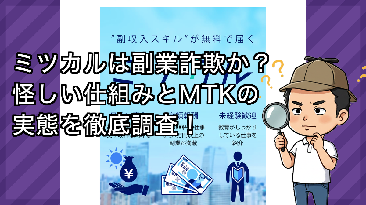 本記事では、ミツカルという副業案件の内容、登録後の流れ、副業詐欺の可能性を踏まえながら、