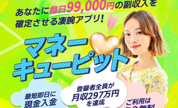 「マネーキューピット」は毎日99,000円の副収入を約束するアプリですが、実際には非常に怪しい内容です。