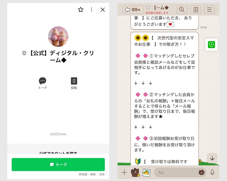 その「公式ディジタルクリーム」のLINEから、副業の紹介を受ける流れだったのですが、