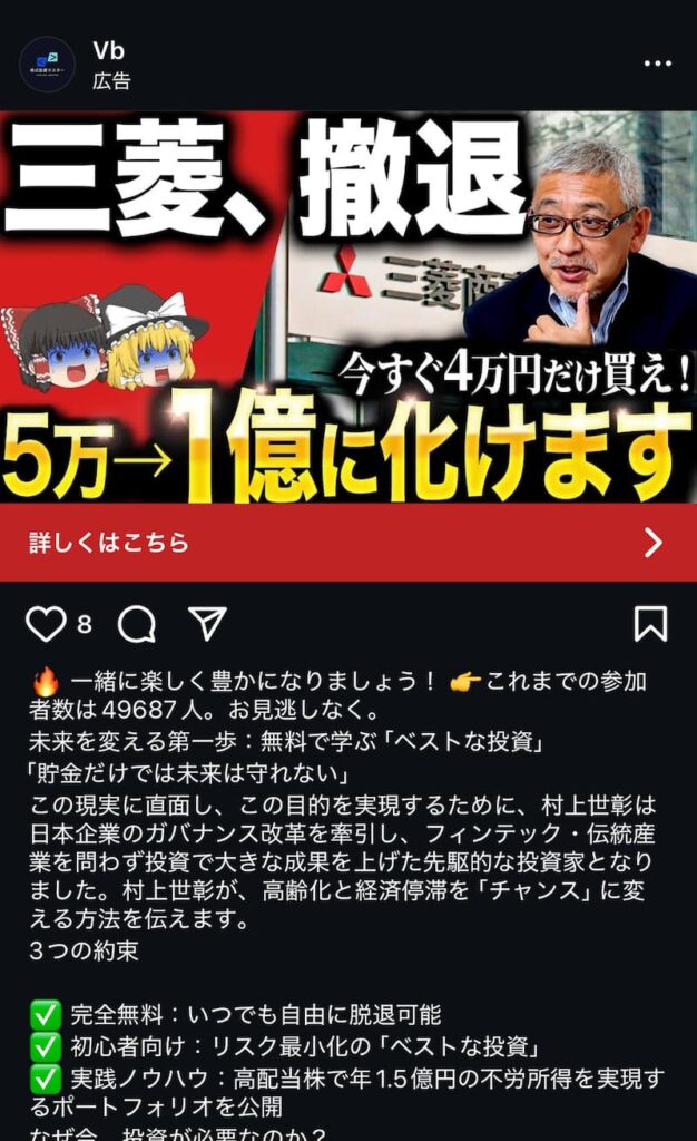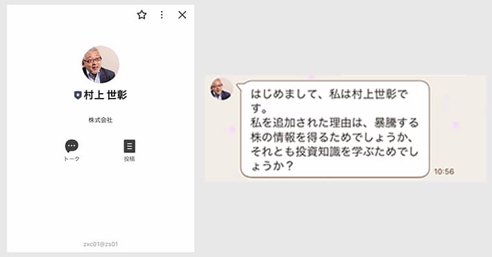 村上世彰を装ったSNS広告・ウェブ広告では、