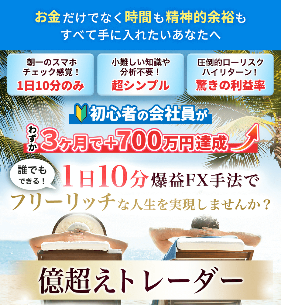 今回は、永井翔のフリーリッチFXの「1日10分で爆益!ローリスクハイリターンFX手法」という投資案件について徹底的に調査します。