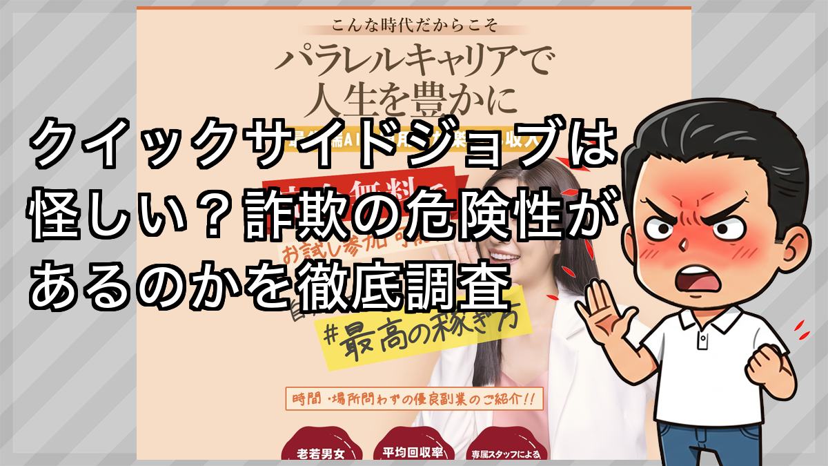 本記事では、クイックサイドジョブの内容や評判、仕組みを徹底調査し、本当に信頼できる案件なのか、それとも危険な詐欺案件なのかを詳しく解説します。
