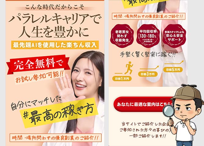 さらに、過去に詐欺の疑いがある副業情報も含まれており、信頼性の低い案件へ誘導される可能性が高いことがわかりました。