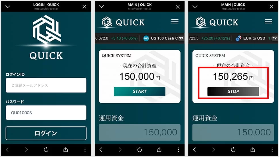 しかし、QUICKシステムでは、ユーザーに「利益が増えている」と思わせるだけの疑似的な演出にすぎません。