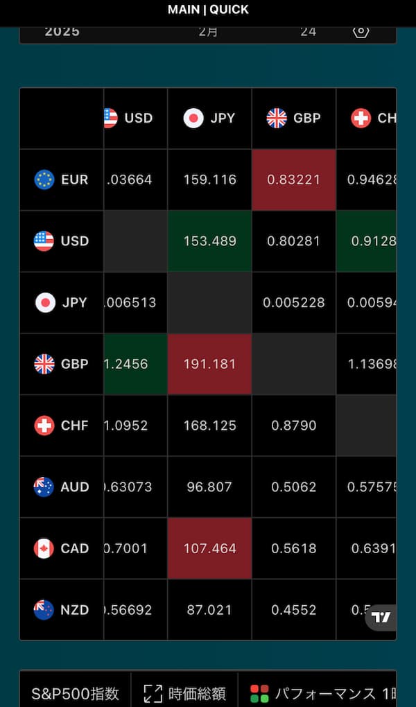 また、画面には、FX(外国為替)の通貨ペアの情報や、