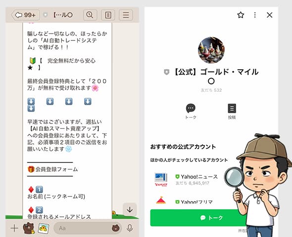 「公式 ゴールドマイル」というLINEアカウントの追加を求められました。