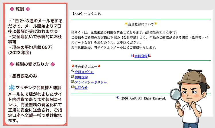 この専用サイトでマッチング会員と雑談をすることで報酬が得られるという内容ですね。