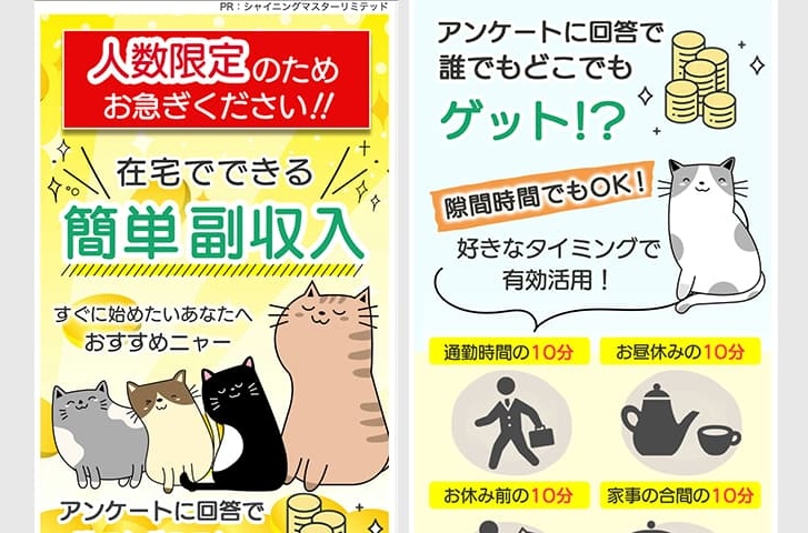 アンケートに回答するだけの作業とのことなので、ポイ活的なスマホ作業や、アンケートモニターを副業にすることが考えられますが、日本の平均月収以上の報酬が得られるビジネスモデルとは言い難いです。