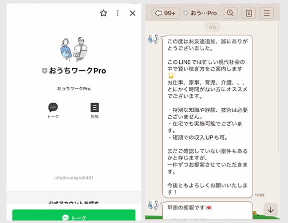 「おうちワークPro」というLINEアカウントを追加することになりました。