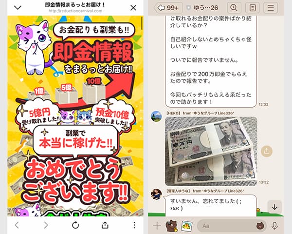 実際にはLINEグループに誘導され、稼げる根拠のない副業情報が送られてくる仕組みで、怪しい副業に誘導する実態が潜んでいま視野。