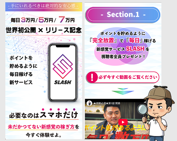 そのリンクを開くと、スラッシュ(SLASH)は毎日3〜7万円稼げる今までにないポイントサービスと説明されていますね。